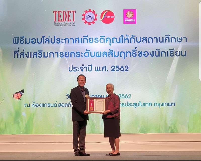 วันอาทิตย์ที่ 15 ธันวาคม พ.ศ.2562 ท่านผู้อำนวยการ ศุภกฤต ดิษฐสุวรรณ เข้ารับมอบโล่ประกาศเกียรติคุณสถานศึกษาที่ส่งเสริมการยกระดับผลสัมฤทธิ์ของนักเรียน ประจำปีการศึกษา 2562 จากศูนย์ภูมิภาคว่าด้วยสะเต็มศึกษาขององค์การรัฐมนตรีศึกษาแห่งเอเชียตะวันออกเฉียงใต้(ศูนย์ SEAMEO STEM-ED) ร่วมกับธนาคารออมสิน บริษัท เอดู พาร์ค จำกัด และ CMS Edu ประเทศเกาหลีใต้ ณ ห้องแกรนด์ฮอลล์ ศูนย์นิทรรศการและการประชุมไบเทค บางนา กรุงเทพมหานคร