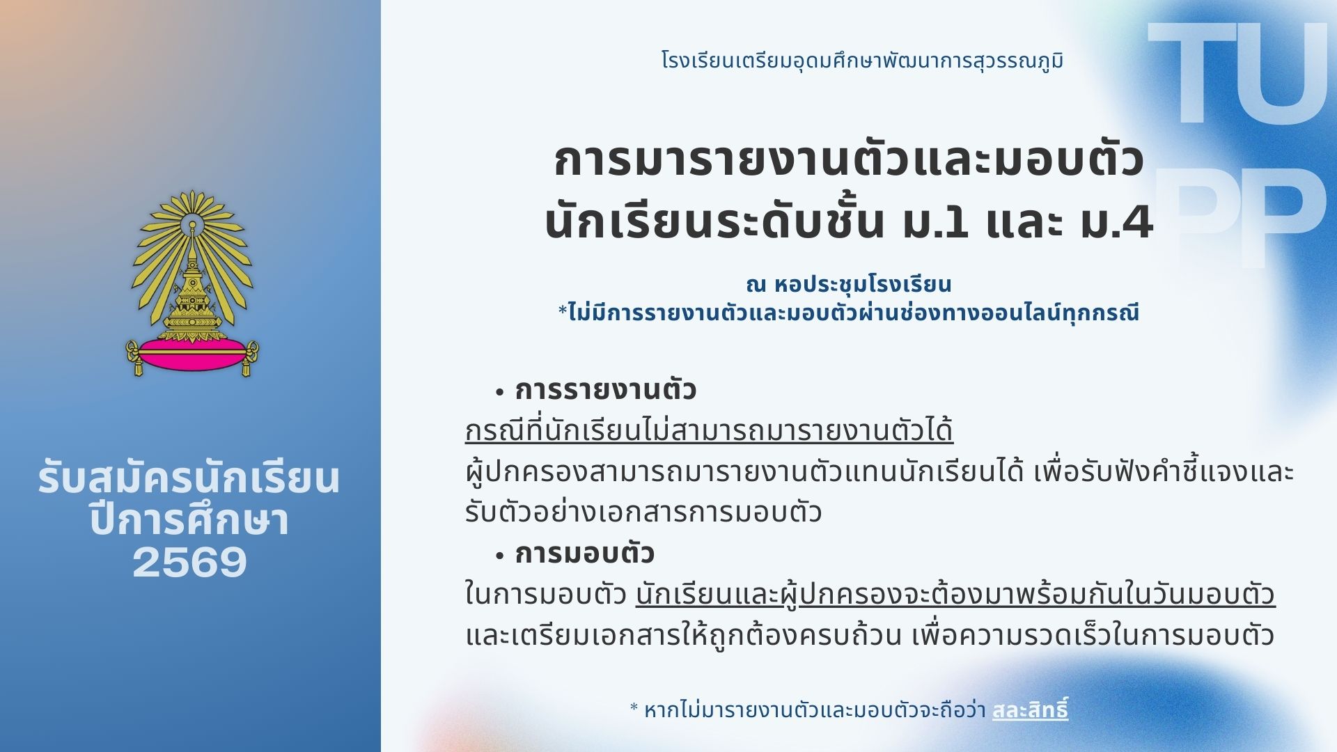 >>พิมพ์ใบมอบตัวนักเรียน<<