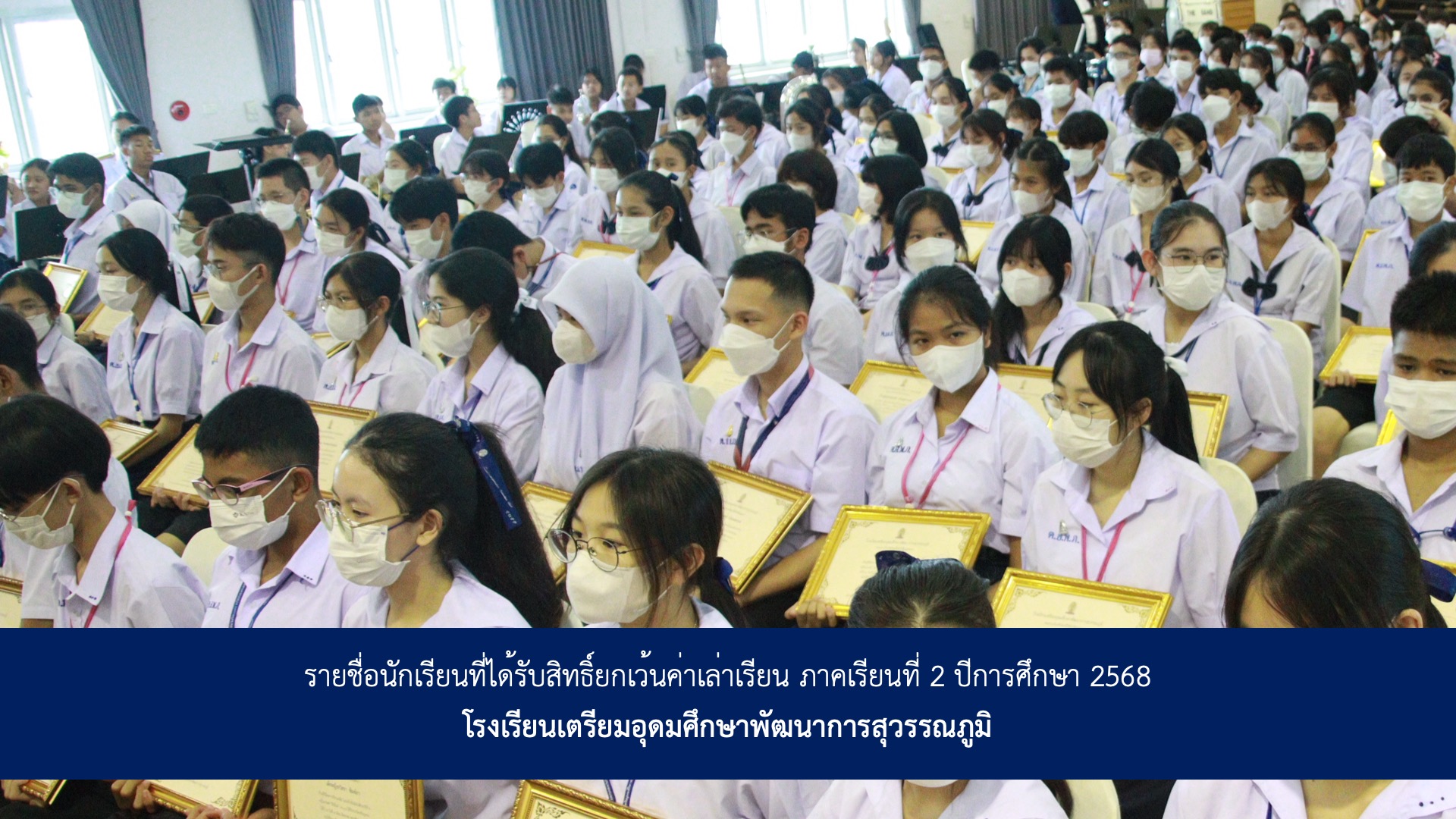 • รายชื่อนักเรียนที่ได้รับการยกเว้นค่าเล่าเรียนภาคเรียนที่ 2/2568