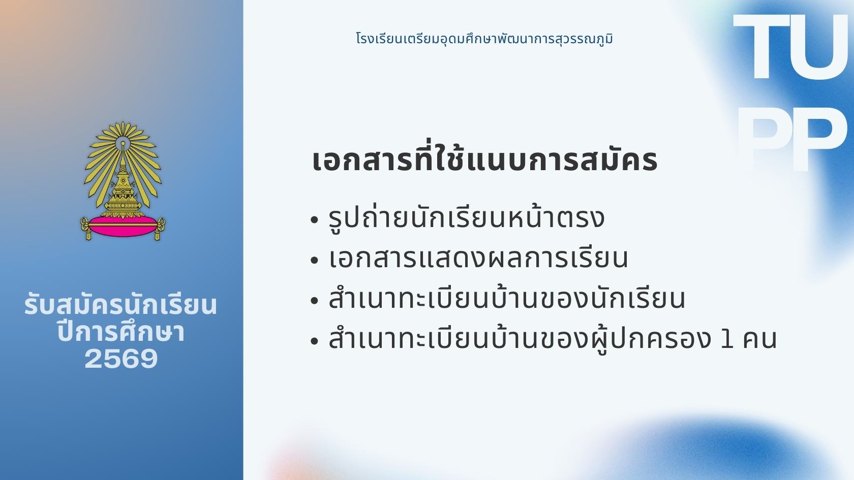 View Larger Image การรับสมัครนักเรียน ปีการศึกษา 2569 ประกาศ เมื่อ 23 มกราคม 2569 (แก้ไขข้อมูลล่าสุด 3 กุมภาพันธ์ 2569) ระเบียบการรับสมัครนักเรียนโครงการห้องเรียนพิเศษ ระดับชั้น ม.1 และ ม.4 ปีการศึกษา 2569 สมัครเข้าเรียนโครงการห้องเรียนพิเศษ ระดับชั้น ม.1 และ ม.4 ปีการศึกษา 2569 phannaree2026-02-07T12:21:14+07:00 Share This Story, Choose Your Platform! FacebookXRedditLinkedInWhatsAppTumblrPinterestVkEmail Related Posts ผลคะแนนสอบ โครงการทดสอบเตรียมความพร้อม TUPP Pre-test 2569 January 30th, 2026 | 0 Comments ระเบียบการรับสมัครนักเรียนโครงการห้องเรียนพิเศษ ระดับชั้น ม.1 และ ม.4 ปีการศึกษา 2569 January 29th, 2026 | 0 Comments ตารางสอบปลายภาคเรียนที่ 2 ปีการศึกษา 2568 January 27th, 2026 | 0 Comments หลักเกณฑ์ยกเว้นค่าเล่าเรียนและรับเหรียญเรียนดี สำหรับนักเรียนชั้น ม.3 และ 6 ปีการศึกษา 2568 January 27th, 2026 | 0 Comments รายชื่อนักเรียนผู้มีสิทธิ์เข้าสอบ TUPP Pre-test ปีการศึกษา 2569 January 22nd, 2026 | 0 Comments